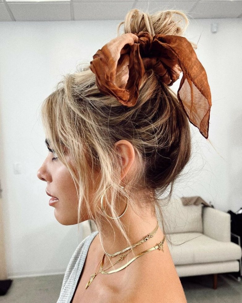 Всегда актуальный пучок и в 2023 году будет в фаворитах. Лучшей причёской на этот год называют хаотичный пучок, в котором выпускают большое количество прядей по всей шевелюре. Чем проще завязан пучок, тем ярче выглядит прическа.