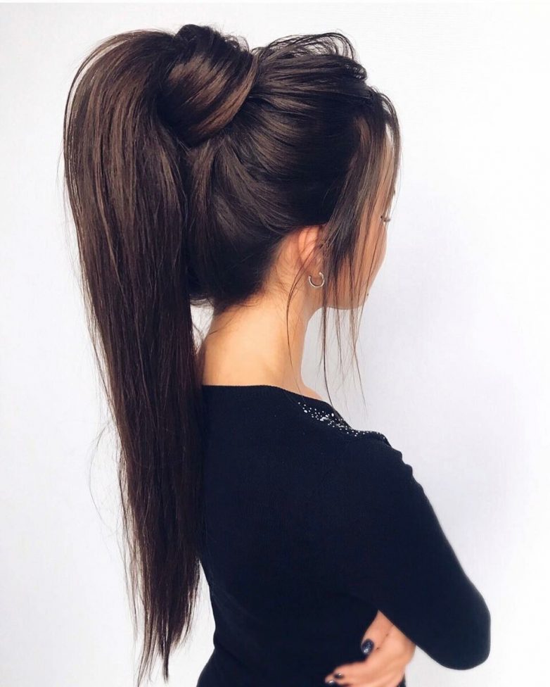 Высокий хвост – это классика среди длинных причесок. Безупречная укладка позволяет показать всю красоту женского лица.