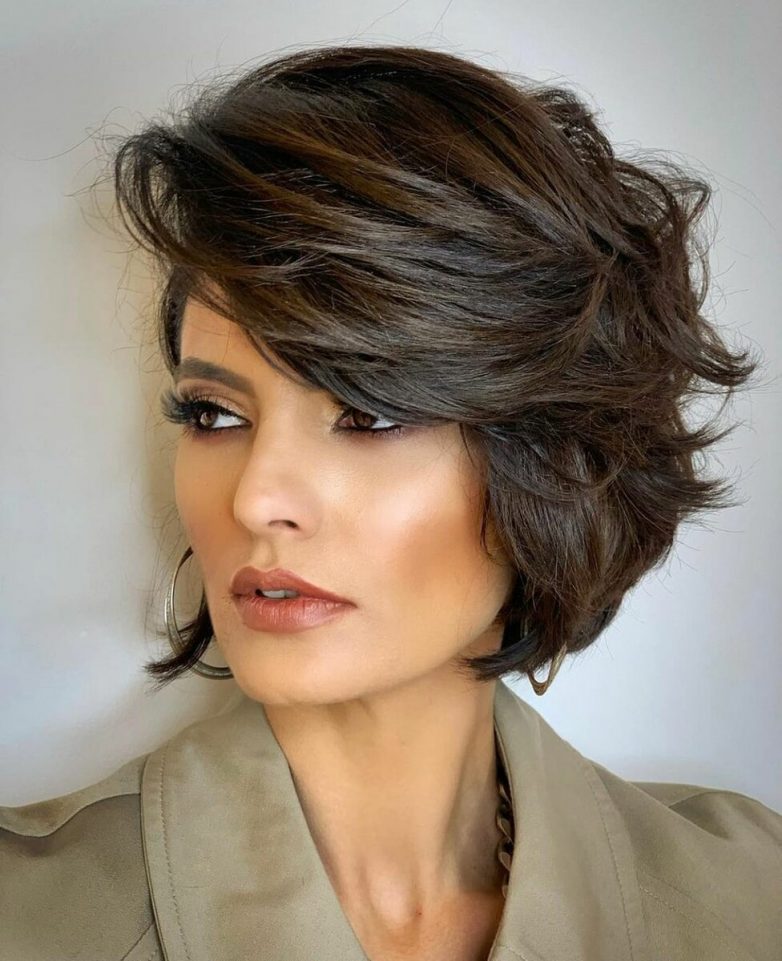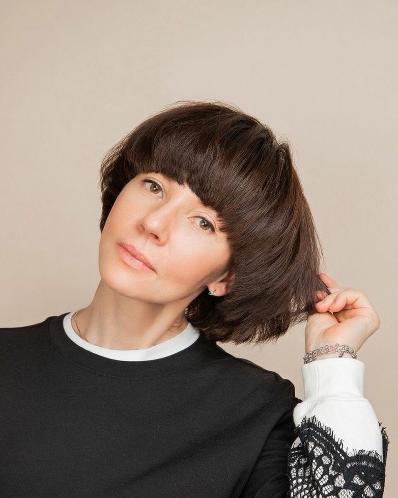 Украшая стрижки на темные волосы различного вида челками, можно менять свой имидж. Однако, при выборе стрижки следует учитывать и тип лица, и возрастные параметры.