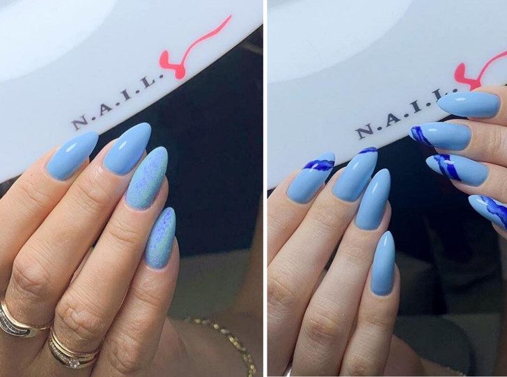 Самодостаточные Водолеи обладают незаурядным умом, который часто помогает им генерировать идеи, которые не смог бы придумать никто другой, кроме них. Из-за этого им бывает трудно найти единомышленников, которые понимали бы ход их мысли. Таким воздушным личностям подойдет маникюр в голубых оттенках, который будет транслировать их открытость и гуманность.