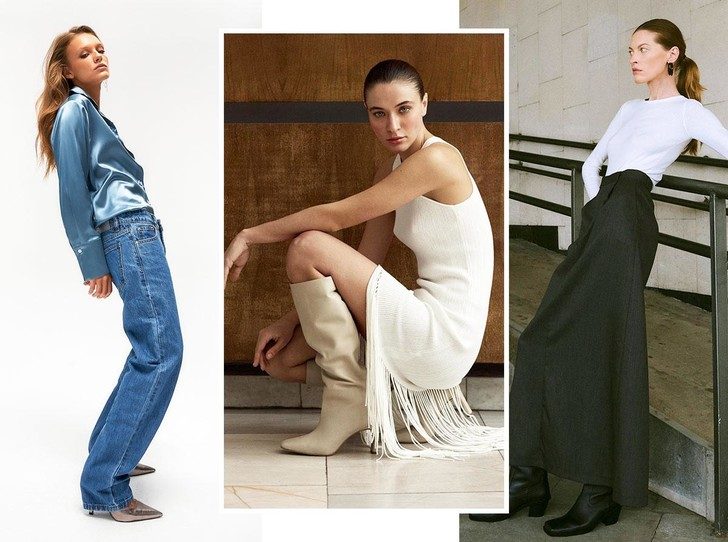 Не так давно в моду вернулись высокие сапоги с каблуком kitten heel и моментально захватили гардеробную каждой из нас. Эта обувь станет отличным вариантом в переходный период, когда на улице еще прохладно и слякотно. Надевайте любимые пары с мини-юбками и короткими платьями, а если вы выбираете длину миди или макси, тогда сапоги должны заканчиваться под юбкой — так они не исказят фигуру.