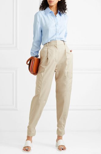 Брюками с нормальной средней посадкой на талии или приближенной к ней. И красиво, и модно, и надежно. Лайфхак: в магазинах говорите консультантам, что вам нужны брюки с высокой посадкой, потому что, увы, но многие до сих пор считают, что посадка на талии — это «где-то чуть выше попы».