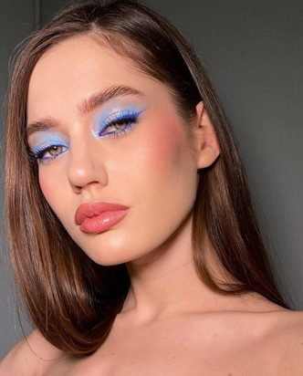 После того как синий-электрик захватил тренды маникюра, оттенок плавно перебрался и в макияж. Синяя стрелка подойдет к любому цвету глаз и одинаково хорошо смотрится в соло и в сочетании с шиммерными тенями.