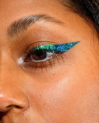 Блестящие стрелки с глиттером и стразами были замечены не на одной Неделе моды. Такой макияж всегда смотрится ярко и необычно, а повторить его просто, так как кроме блестящей подводки вам ничего не понадобится.