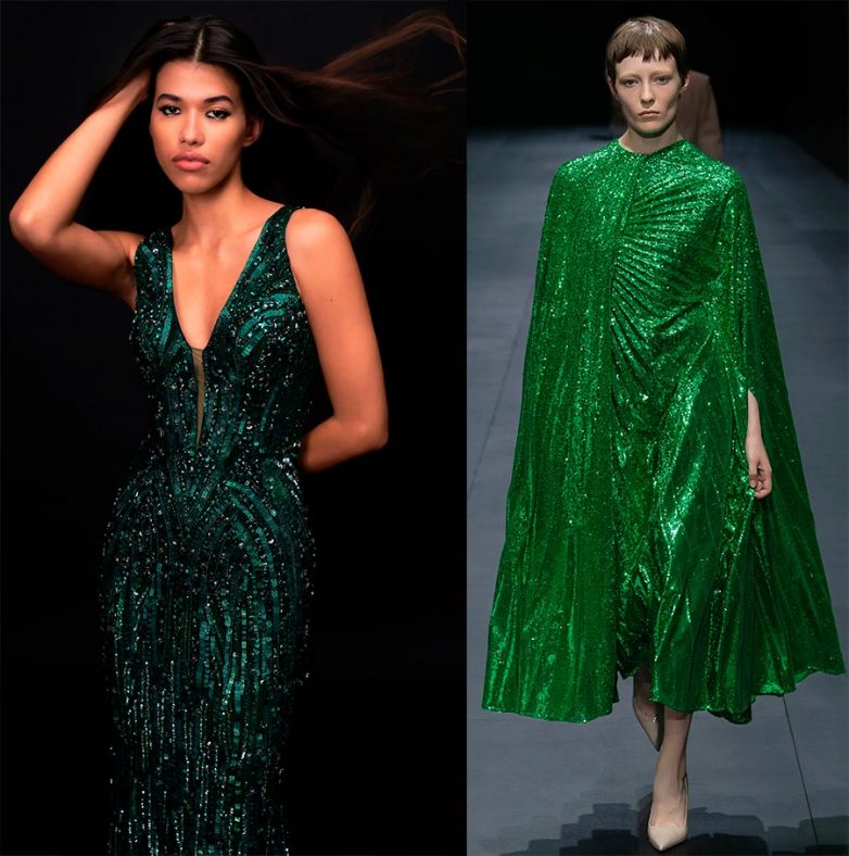 Но сегодня будем говорить только о красоте, поэтому давайте заглянем на подиум 2023. И здесь мы увидим, насколько серьезно дизайнеры окунулись в гамму зеленых оттенков.
