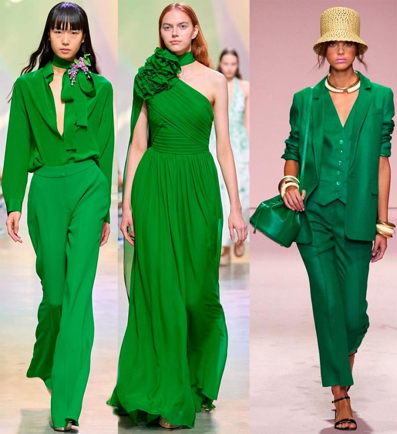 В сезоне 2023 Институт цвета предложил немало зеленых оттенков, и дизайнеры не только подхватили эту идею, но добавили еще и свои излюбленные цвета из той же зеленой гаммы. В результате, весенне-летние коллекции заиграли удивительной палитрой ярких и жизнеутверждающих оттенков.