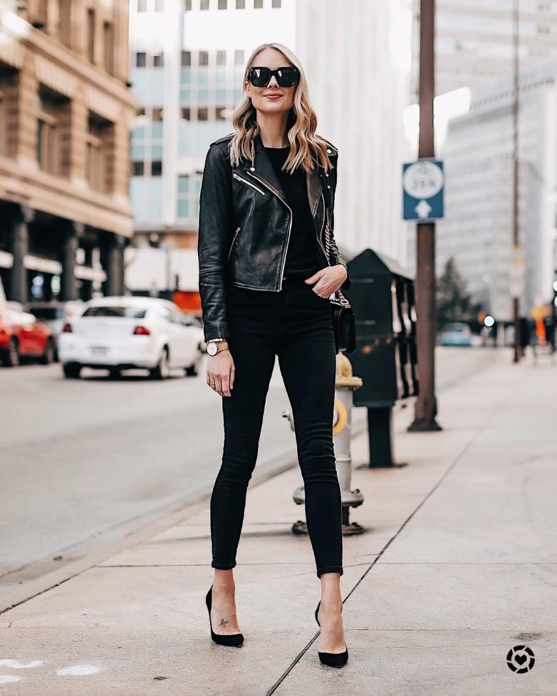 К классике можно причислить носить джинсы черного цвета. Они станут отличным решением для офисного аутфита. Модель с высокой талией зрительно удлиняет фигуру. Плюсом считается и то, что заморачиваться по поводу верха не придется. Черный гармонирует с любым цветом.