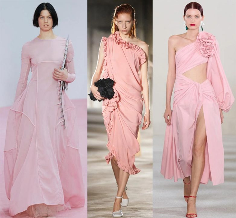 Дизайнеры сошлись во мнении, что в новом сезоне только платья с рюшами, оборками и воланами отшиваются из розового.