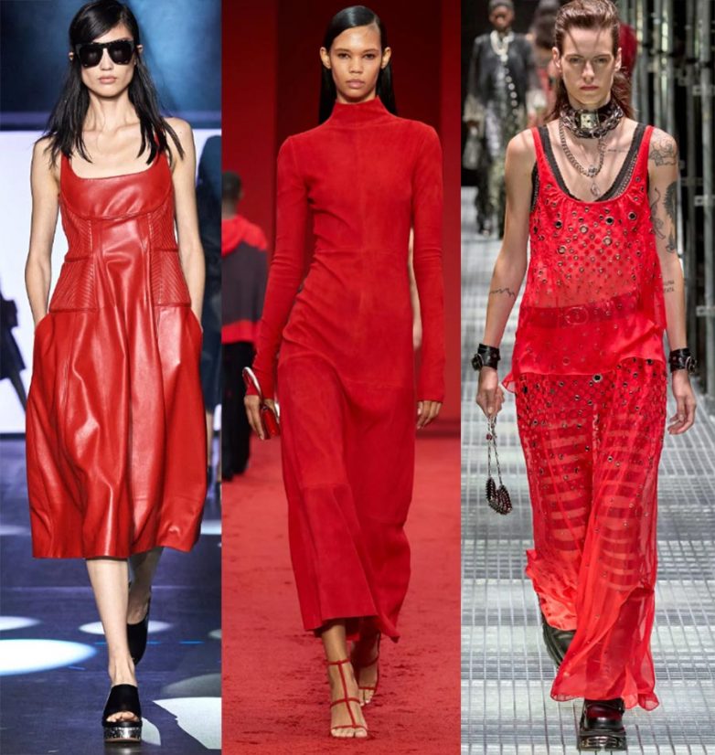 В 2023 на драме красного цвета дизайнеры не останавливаются, добавляя в образы фактуру. В красном цвете могут быть все виды одежды из любых материалов, вещи из ткани, кожи, замши или кружева.