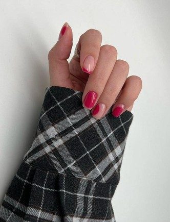 Французский маникюр актуален в любое время года, однако весной нам больше нравится делать этот дизайн в ярких или пастельных оттенках. Вы можете сочетать между собой светлый и темный оттенок лака, попросив мастера нарисовать на свободном крае две полосы. Или же немного пофантазировать, отойти от рамок привычного френча и «поиграть» с формами.