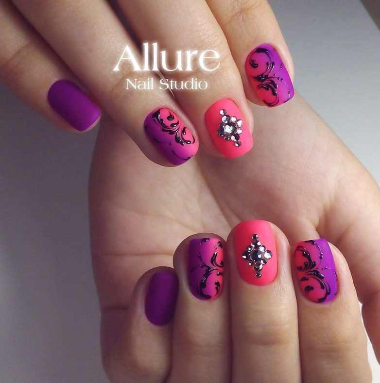 Женщинам, которые любят яркие краски в своем стиле, стоит обратить внимания на узоры, выполненные из смелой и сочной палитры. Для того чтобы маникюр не выглядел слишком броским, стоит опираться не только на свои вкусы, но и спросить мнение мастера. Но по своей сути в дизайне большое значение имеет ваша фантазия.