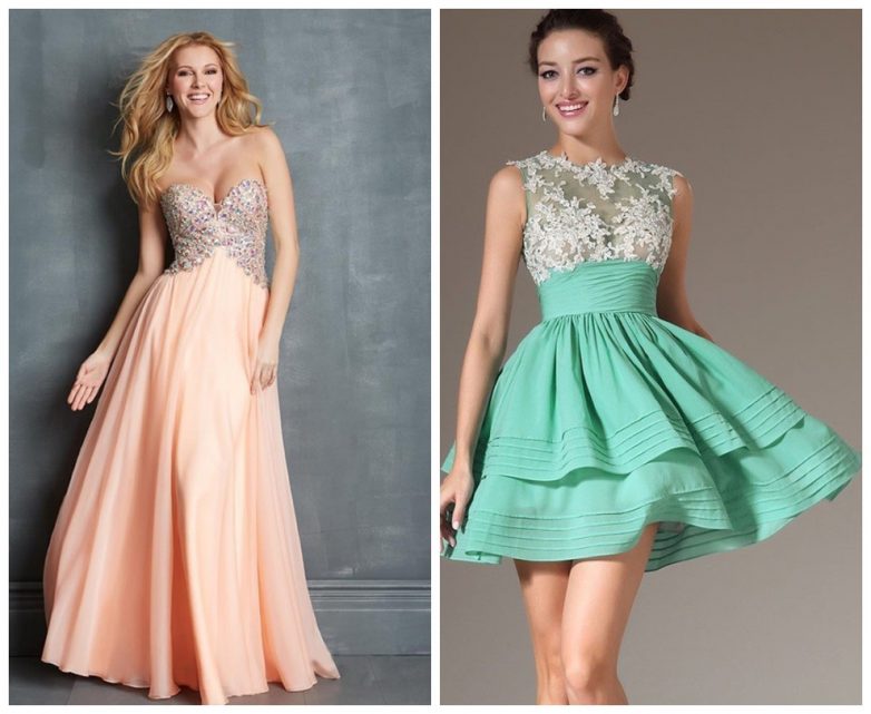 В качестве вечернего платья лучше подойдут длинные модели. Менее праздничный вариант – короткие платья. Платья с завышенной талией в зависимости от модели можно надевать как с тонкой шпилькой, так и с обувью на платформе или танкеткой.