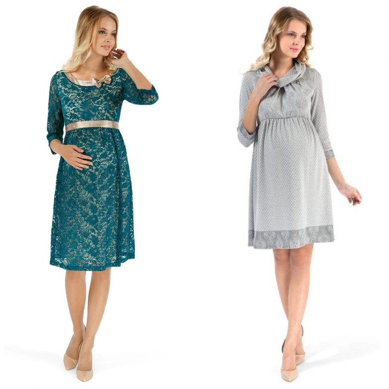 Выбирая вечерний вариант, дизайнеры советуют наряды с высокой линией талии прямо под грудью, которая выделена широким поясом.