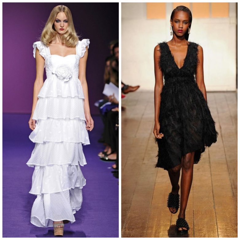 Очень актуальными будут платья с завышенной талией черного или белового цвета, а также в черно-белом гамме.