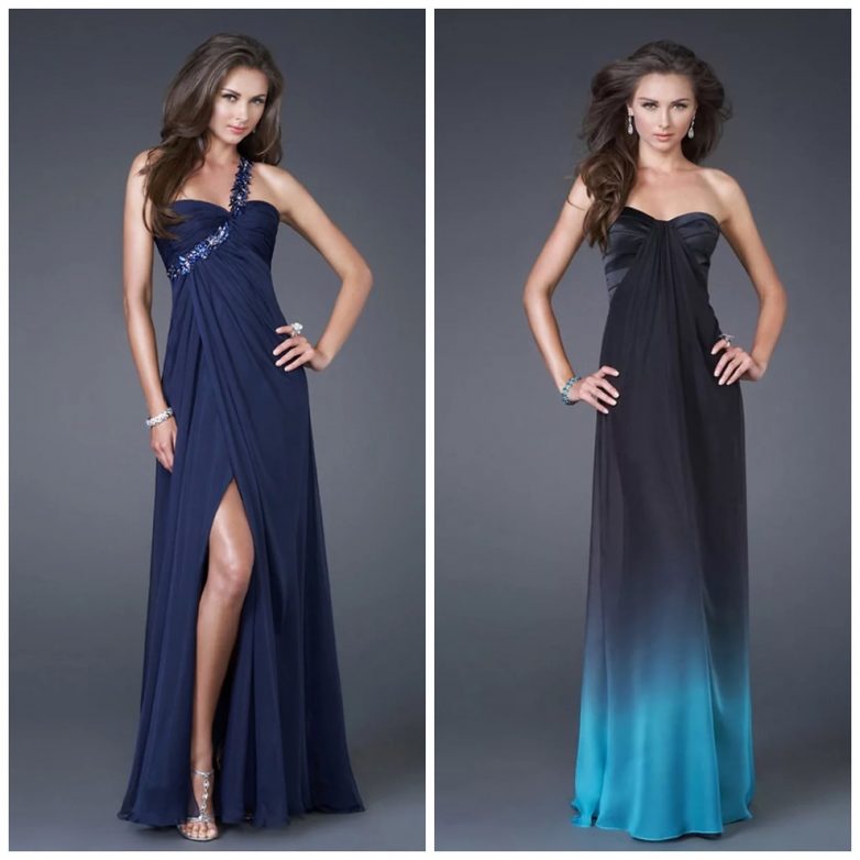 Законодатели мод рекомендуют также открытые модели вечерних платьев с лентами под грудью с оголенной шеей, руками и глубоким декольте. В таком платье Вы будете выглядеть очень женственно и сексуально.