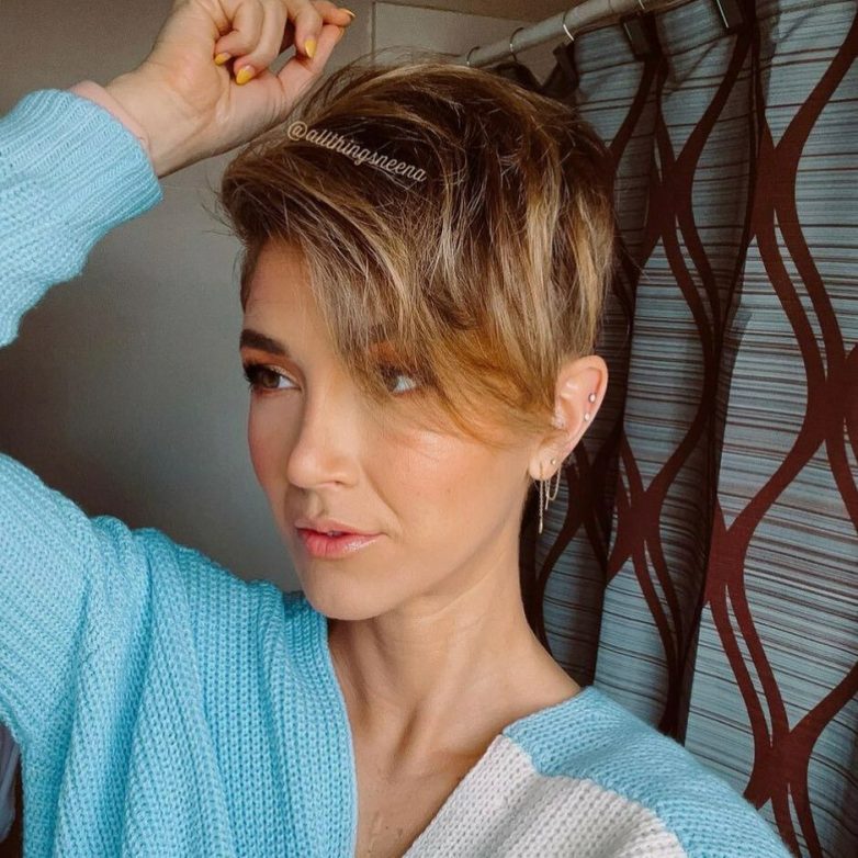 Стрижка пикси с чёлкой на бок