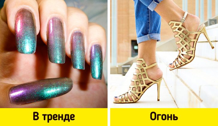 Тем, кто предпочитает более сдержанный стиль, можно использовать один подобный элемент. Например, золотую обувь или «хромированный» маникюр. Он тоже очень актуален в этом году.