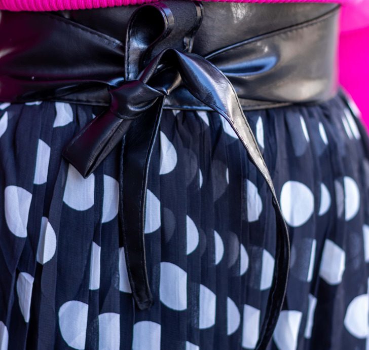 Одежда в горошек снова актуальна. Этот принт у многих ассоциируется с женственным стилем середины XX века, поэтому такое перерождение добавляет элегантности современным образам. Вариаций узора масса: от крупного гороха на платьях и юбках до мелких точек на полупрозрачных блузах.