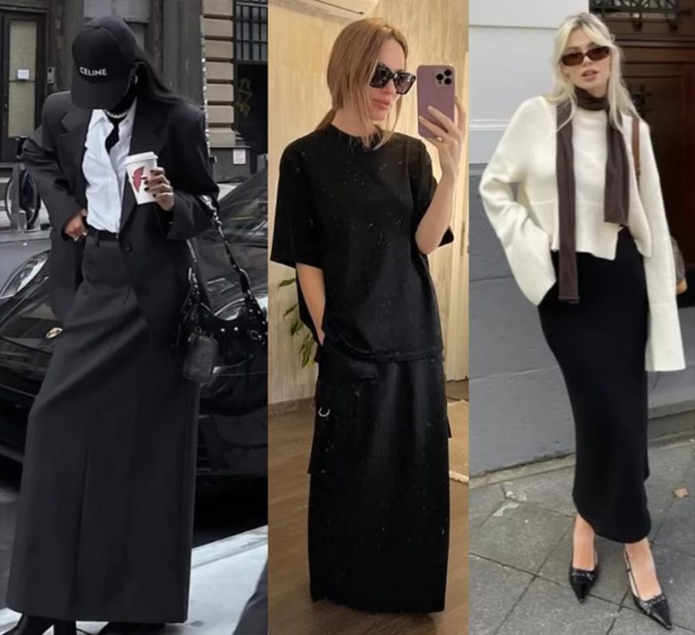 Шестая идея: черная юбка карго макси + черная футболка оверсайз