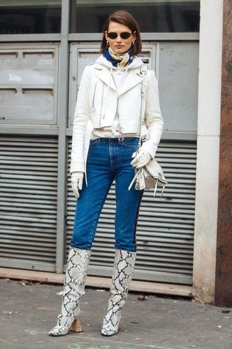 Как этого избежать? Сочетайте укороченные косухи и джинсовые куртки с прямыми платьями или юбками-карандаш, которые всегда смотрятся выигрышно и дорого. Не забывайте про аксессуары и обувь: ботильоны с острым или квадратным мысом, стильная фактурная сумка, что держит форму, и узкие солнцезащитные очки.