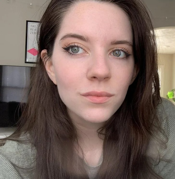 «Вот так я выгляжу, когда делаю макияж. Я наношу тени на брови, чтобы подчеркнуть нижний край, немного румян, а затем подводку и тушь»