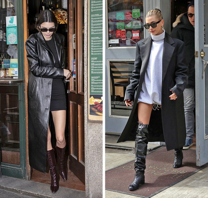 Весной часто хочется надеть короткую юбку, но погода не всегда располагает. Можно взять пример с Хейли Бибер и Кендалл Дженнер, которые сочетают короткие вещи с длинными тренчами и пальто. Они выглядят броско, но явно не мерзнут.