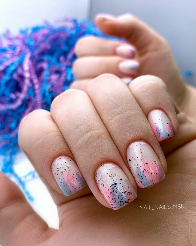 Брызги в маникюре уместны в любом стиле маникюра. Стильными мазками, капельками, брызгами от лака можно украсить короткие, длинные ногти, которые будут выглядеть еще более привлекательно.