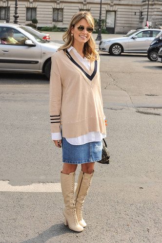 Кашемировый свитер или джемпер с V-образным вырезом может выглядеть скучно и неинтересно. Но если сочетать их с юбкой длины макси, получится актуальный и смелый образ. Дополнить такой аутфит можно ботильонами с квадратным мысом или сапогами в стиле вестерн.