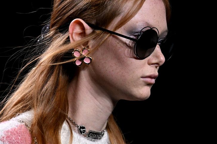 Мы также заметили, что многие модели выходили на подиум с каффами в ушах. Очень креативный и умный ход для того, чтобы разбавить темные осенние одежды.