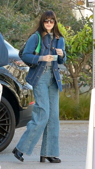Это еще один актуальный материал, который для аутфитов выбирают успешные девушки. Во-первых, джинсовая куртка — классический вариант верхней одежды на теплую весну и лето, который легко комбинируется с вещами в гардеробе: от платьев и юбок до шортов и брюк. Во-вторых, возвращение модной эпохи нулевых заставило дизайнеров по-новому полюбить деним и интерпретировать его в своих коллекциях. Так, сегодня снова актуальны джинсовые тотал-луки, и лучше будет, если вы подберете разные по цвету материалы.