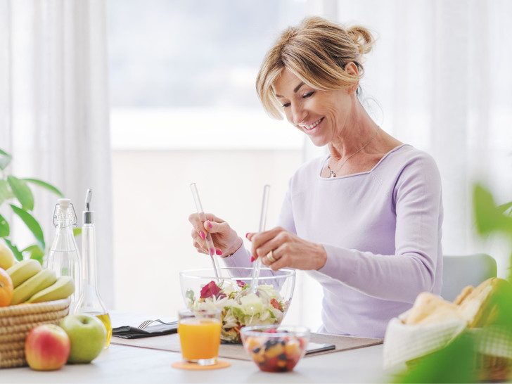 Обратите внимание на сбалансированность рациона. После 40 рекомендуется питаться исходя из усредненной формулы БЖУ: углеводы — 45%, жиры — 25%, белки — 25%.