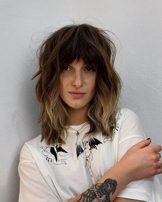 Эта техника одна из самых популярных для брюнеток. В этом окрашивании краска наносится мягкими мазками, благодаря которым получается плавный переход от корней к кончикам. Фишка балаяжа в светлых акцентах по длине, которые подчеркивают текстуру волос.