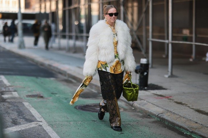 Обратите внимание на геометрию в своих выходах. В области бедер не надевайте одежду с горизонтальными полосами или растянутыми принтами. Выдержанная вертикаль в образе поможет вам визуально удлинить нужную зону. Это может быть как монохромный образ в целом, так и обувь в цвет брюк. Так же вертикаль будет сохранятся, если вы накинете пальто прямого кроя или длинный тренч.