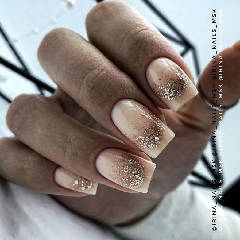 Нюдовый маникюр с блестками