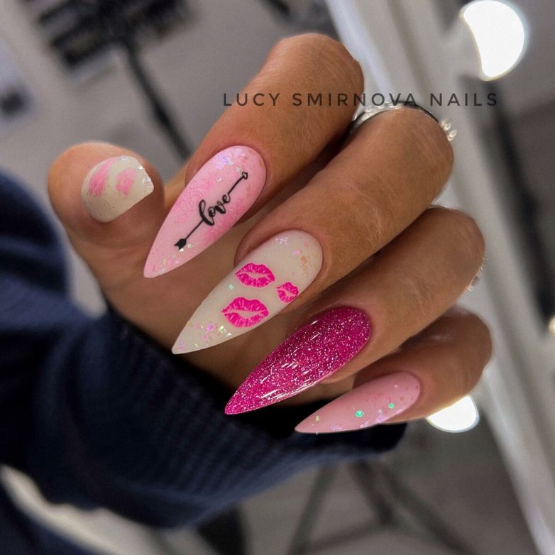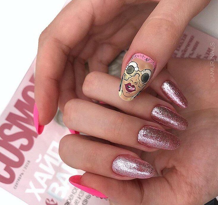 Розовый маникюр с блестками