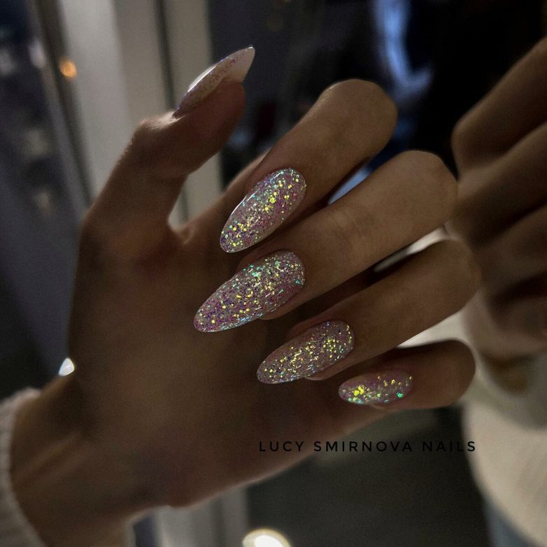 Прозрачный маникюр с блестками