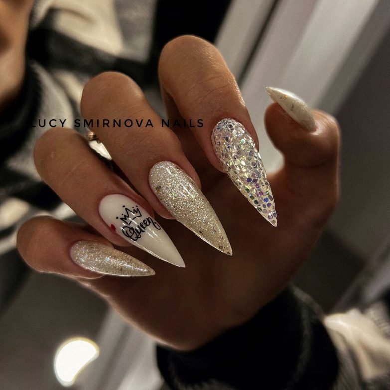 Белый маникюр с блестками