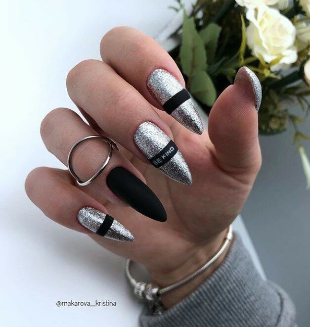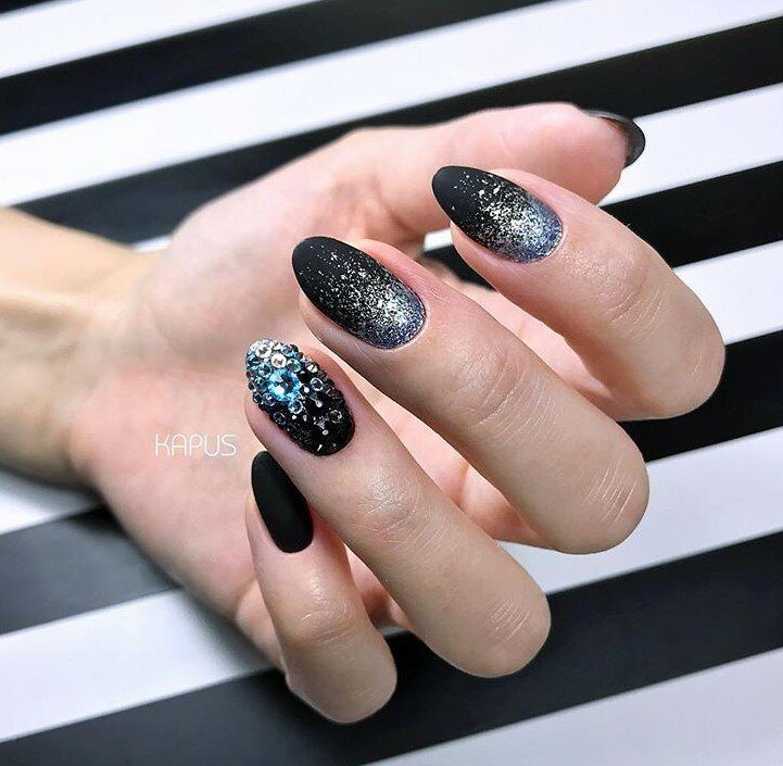 Черный маникюр с блестками
