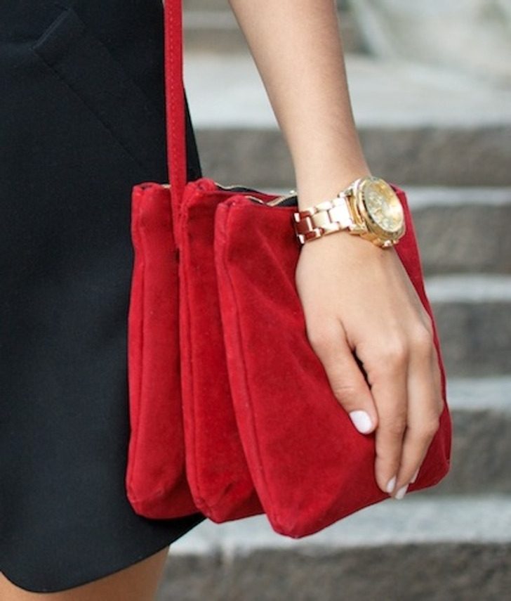 Замша, безусловно, выглядит роскошно, но она легко пачкается, царапается, собирает пыль и крошки и портится под действием воды. Принимая решение о покупке сумки из такого материала, нужно иметь в виду, что эта модель требует особого ухода. Если замшей отделана внутренняя часть аксессуара, в которой обычно хранится косметика, ручки, чеки, жвачка и многое другое, придется заботиться о сумке еще усерднее.