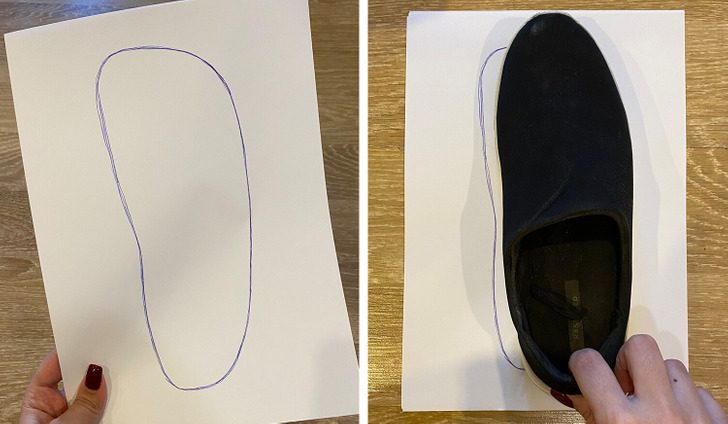 Все мы прекрасно знаем, как утомительна может быть примерка обуви в магазинах. Особенно обидно, когда в первую же секунду становится понятно, что модель мала и мы зря разувались. Чтобы впредь не тратить силы впустую, просто обведите свою ступню ручкой на бумаге и возьмите рисунок с собой. Затем просто прикладывайте обувь поверх кальки. Если ботинок будет уже, короче и так далее, значит, его просто нет смысла примерять.