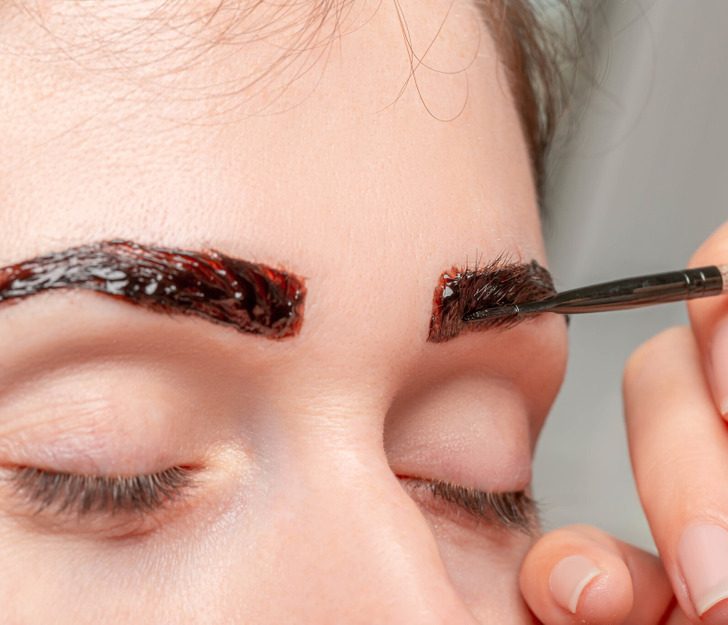 Сейчас некоторые мастера красят брови хной. Это гораздо более щадящая и простая процедура, чем татуаж, к тому же выполняется натуральными средствами. Но результат может разочаровать, если специалист не соблюдает рекомендуемое время окрашивания — около 20 минут — и неаккуратно прорисовывает форму бровей. Ведь хна окрашивает не только волосы, но и кожу. Чтобы проблем не возникло, желательно заранее очерчивать границы кремом или проклеивать специальными патчами.