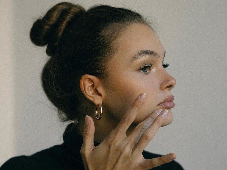 На работу лучше не оформлять лицо ярко: откажитесь от активного контуринга, плотного тона и интенсивного румянца. яркое оформление лица. Достаточно будет замаскировать покраснения, припудрить лицо, нанести немного румян и хайлайтер, которые сделают лицо отдохнувшим. Также можно слегка пройтись по периферии лица бронзером.Утренний уход