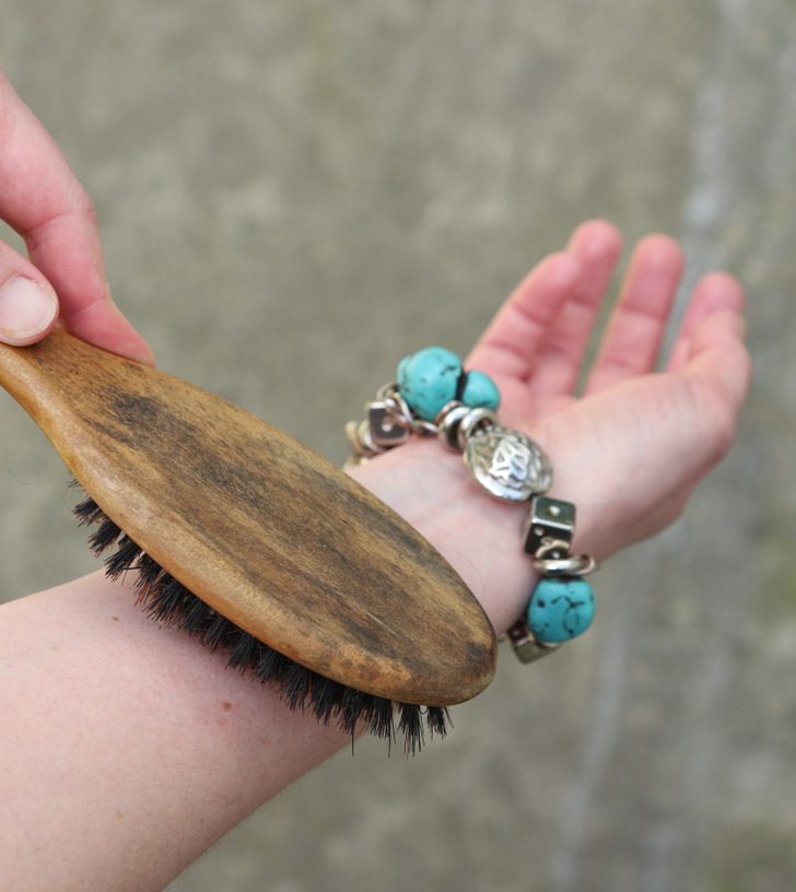 Перед самой процедурой стоит убедиться, что тело и щетка совершенно сухие. Тело очищается снизу вверх, от стоп до бедер и от кистей до плеч, нежными круговыми движениями. Если щетина царапает кожу и на ней появляется раздражение, то на какое-то время стоит прекратить очистку. Для тела и лица требуются разные щетки.
