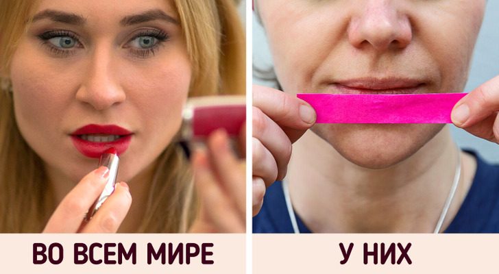 Красят губы с помощью бумаги васи
