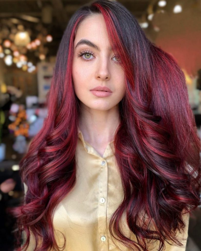 Если вам нравятся яркие оттенки, которые при этом выглядят естественно, вам понравится этот сексуальный и страстный темно-бордовый цвет волос. Бордовый сочетается как с прямыми волосами, так и с пляжными локонами и тугими завитками, поэтому вы можете экспериментировать с укладкой и создавать столько стильных образов, сколько захотите.
