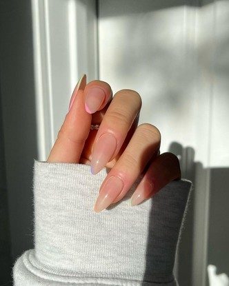 Фирменный дизайн Хейли Бибер не только не теряет свою популярность, но и трансформируется. Весной нейл-инфлюесеры вдохновлялись дизайном в желтом цвете, а летом популярность набирает «глазированный пончик» в нежном оттенке ванили. Кстати, втирка хорошо выглядит как в соло, так и в сочетании с французским маникюром.