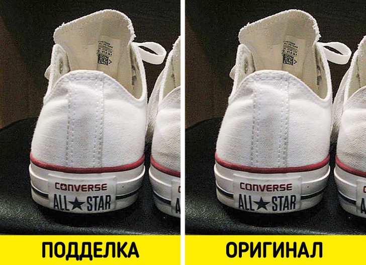 Вес. Оригинальные Converse весят больше, чем подделка, потому что выполнены из более плотных и качественных материалов.