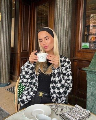 Большой теннис — одно из главных хобби всех богатых наследников, представителей old money. Поэтому в свой образ выходного дня можно добавить теннисную повязку на голову. Волосы при этом можно оставить распущенными или собрать их в хвост, как будто вы только что вышли с тренировки.