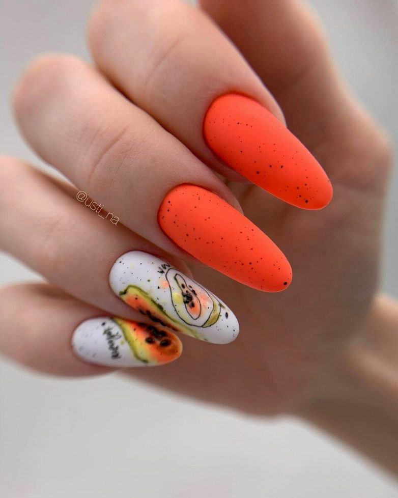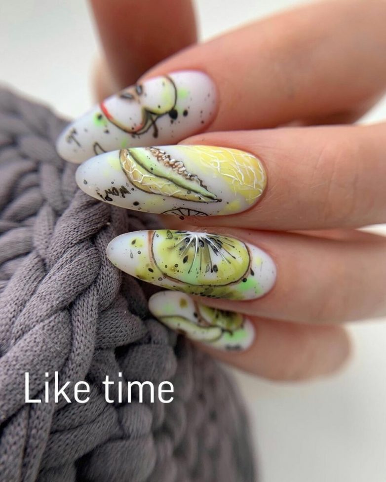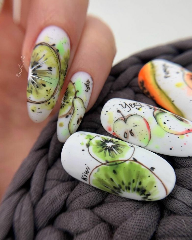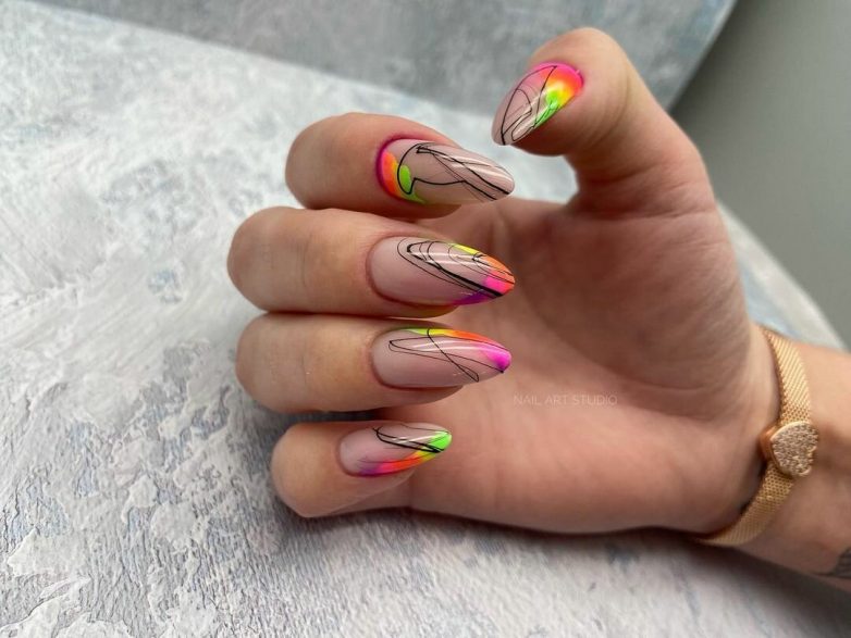 Этот маникюр, вдохновленный конфетами и покоривший своей радужной палитрой социальные сети, основан на цветах упаковки этого популярного лакомства. Вам не потребуются навыки в области «nail art», поскольку основная идея — покрасить каждый ноготь в свой цвет, что делает этот маникюр идеальным для тех, кто не слишком искусен с кистью. Секрет успешного применения этого тренда — выбрать от 5 до 10 цветов и грамотно их сочетать.
