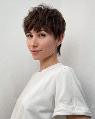 Кудрявые короткие стрижки — вишенка на торте. Разнообразить образ, сделать его более дерзким или наоборот романтичным поможет любая вариация пикси. Мед для ушей стилиста, когда девушка приходит с запросом пикси на кудрявые волосы. Не бойтесь, будьте дерзкими, разрушайте шаблонные стены, будьте счастливы.